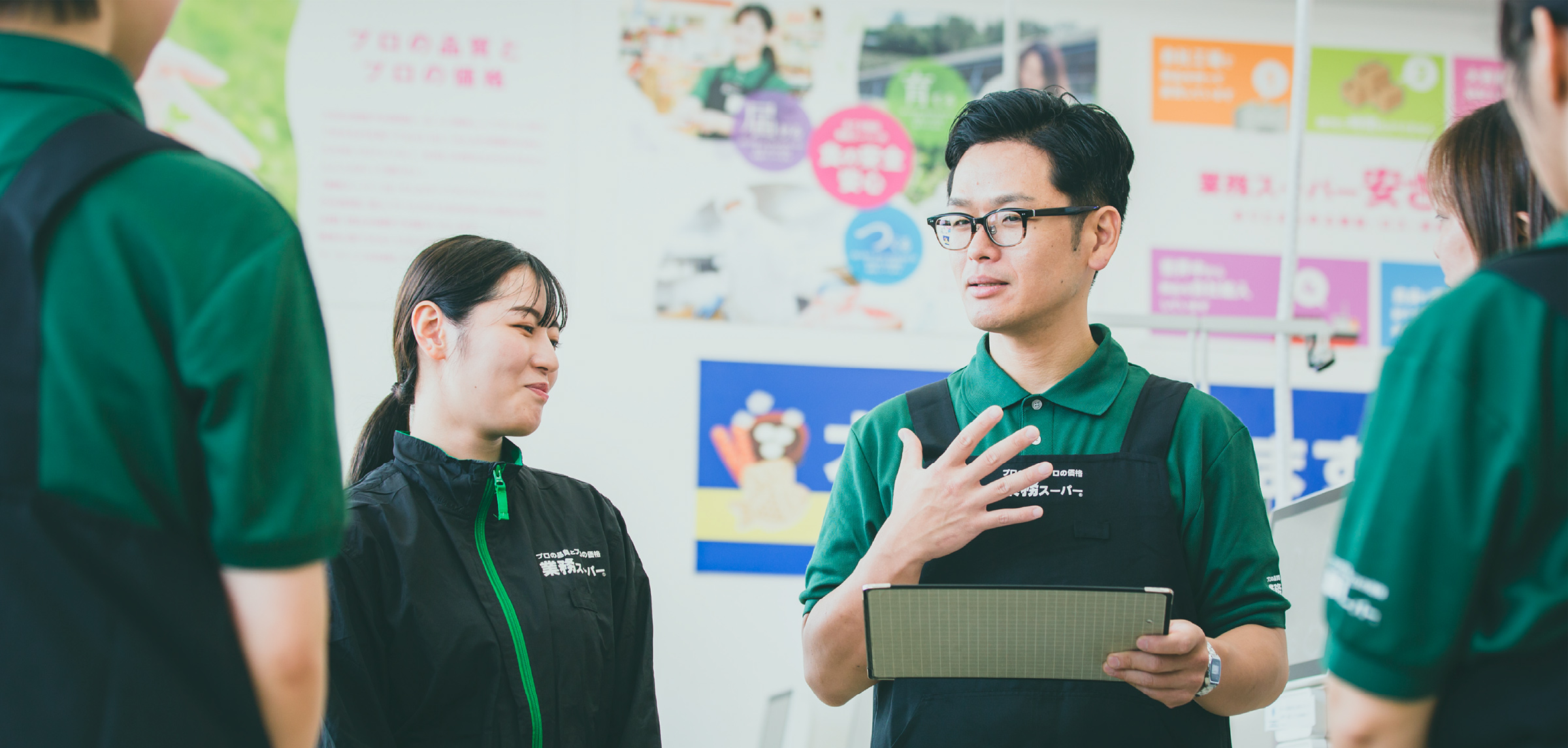 2021年、社長から直接、新卒採用の担当を任されました。学生にとってスーパーマーケットが人気の職種ではないことを理解しつつも、地域貢献のやりがいや、自分で仕事を面白くできる当社の社風に魅力を感じていました。